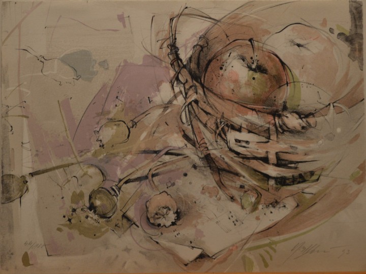 Korb mit Äpfeln, Mohn